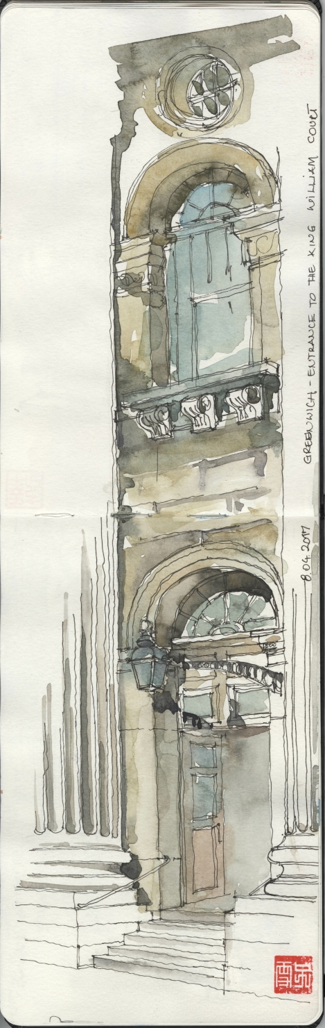 Iuliana’s sketch of the Greenwich Entrance to King William Court, Greenwich.
