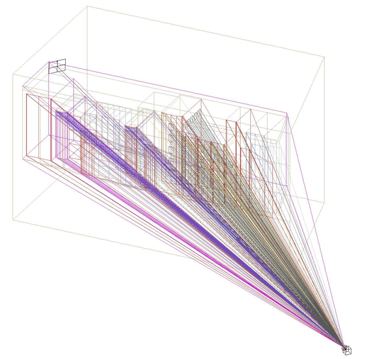 To do this, I created a really simple 3D digital model and was able to line the image up with the model and build the books in 3D – as if they were actually there. From there I could project the points making up the books back towards the camera to work out where they hit the building face – which left the outline of what needed to be painted.