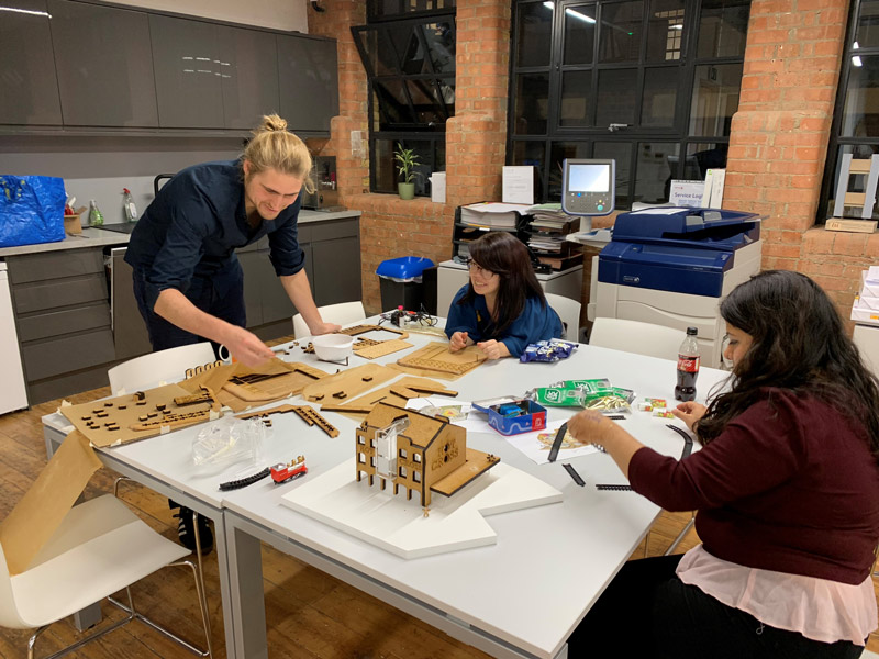 What better way to test the integrity of the gingerbread building blocks than for our resident model maker James Parkinson to put the gingerbread through the model making laser cutter.