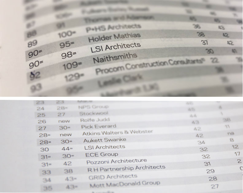 LSI Architects has retained it’s position in Building’s Top 150 Consultants and Top 50 Architects, with the 2019 lists announced at the Building Live Club event in London.