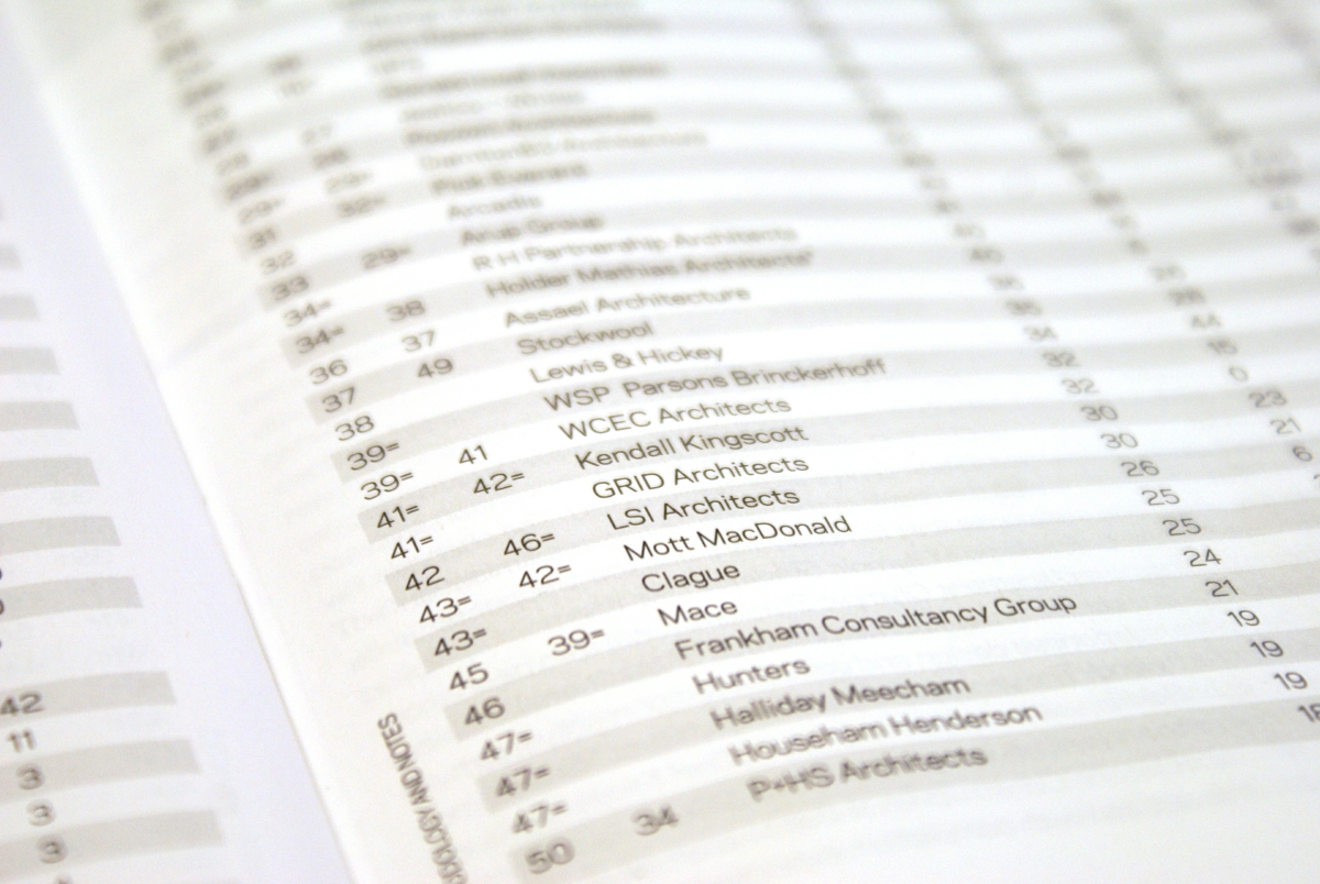 The Practice rose to 101st from 113th in the top 150 firms and from 46th to 42nd in the top 50 Architects.