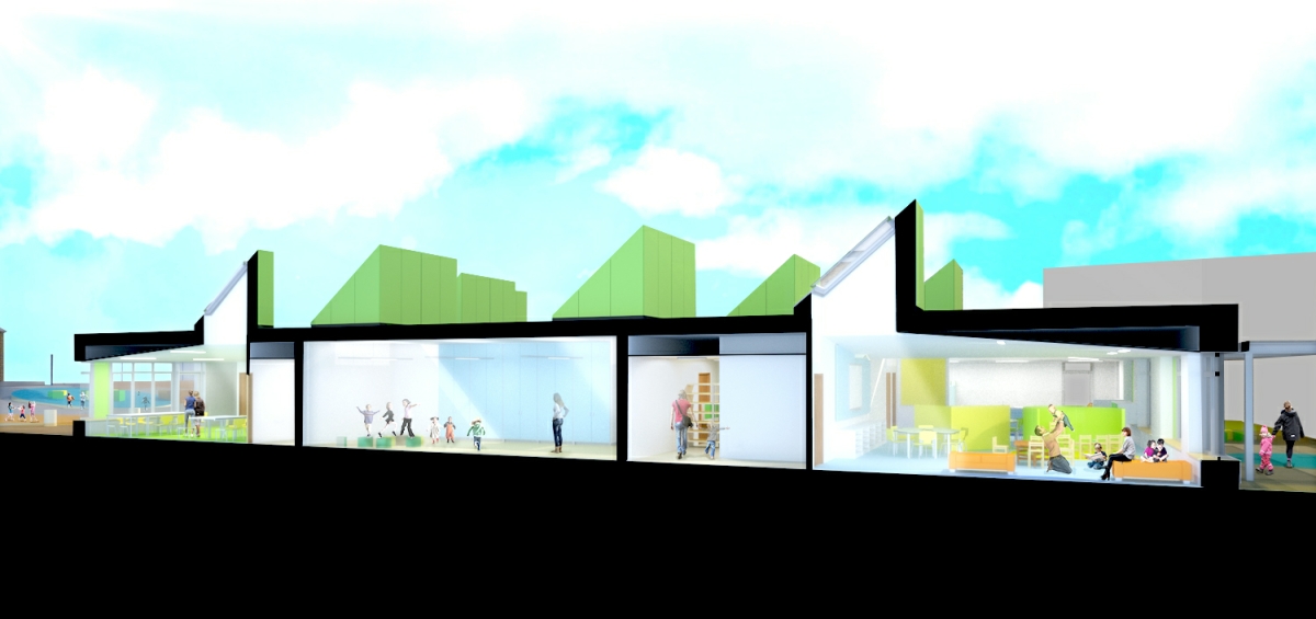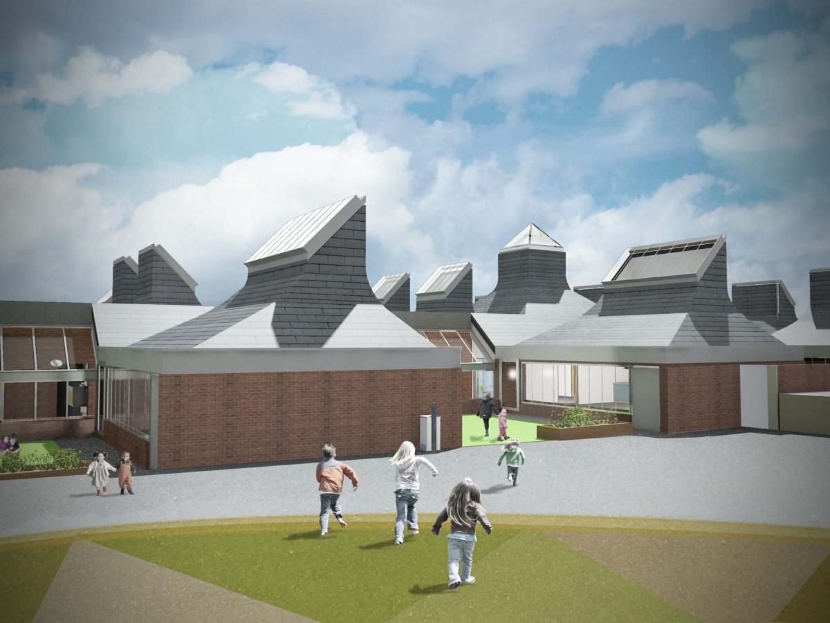 Low energy design solutions have been fundamental drivers for the orientation and layout of the new build early years scheme through the choice of construction materials, the proposed structural and drainage strategy and the way the building is heated and ventilated.