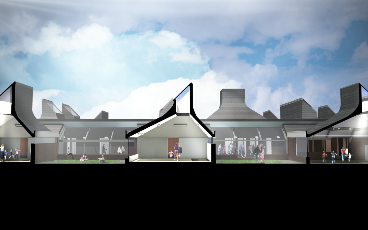 The classrooms and group spaces are designed as independent forms with glazed circulation corridors in between. Each of the classrooms are defined by elegant and dynamic roof forms with rooflights providing a well-lit soft light and permitting passive ventilation. The combination of these distinctive roofscapes, was the major contributor to the architectural character and the reason for the listing.