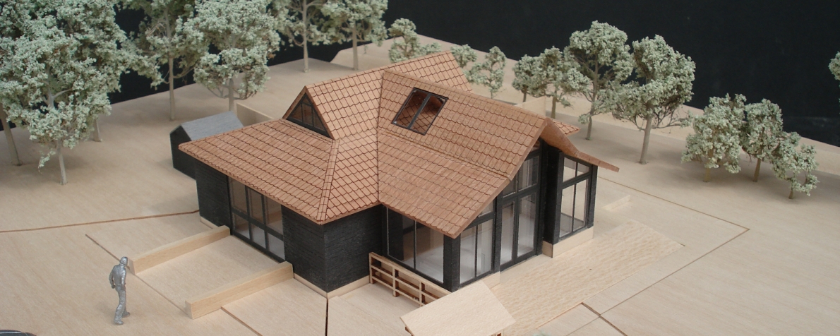 The design features a glazed gable with built in seating and seeks to provide a complementary addition to the existing structure, using matching black stained timber cladding and pantile roof.