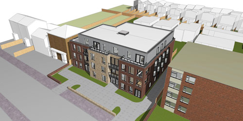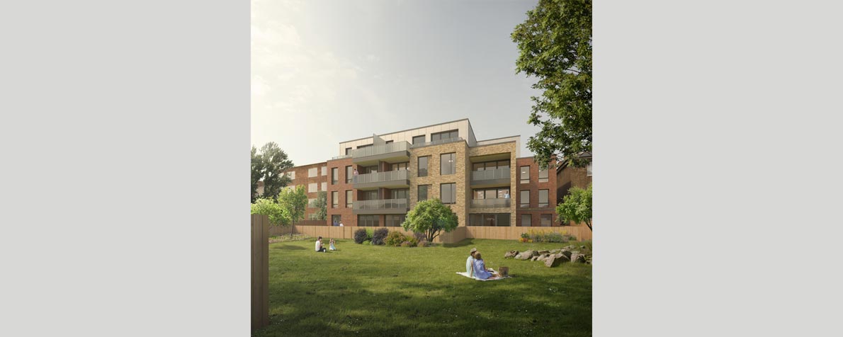 With planning permission already achieved for two detached dwellings to the rear of the site, LSI were appointed to design the main apartment block to the front of the site. In response to planning feedback and the immediate site context, this is a three storey development clad in brick to align with the heights of the neighbouring houses, with a fourth storey set back and clad in zinc.