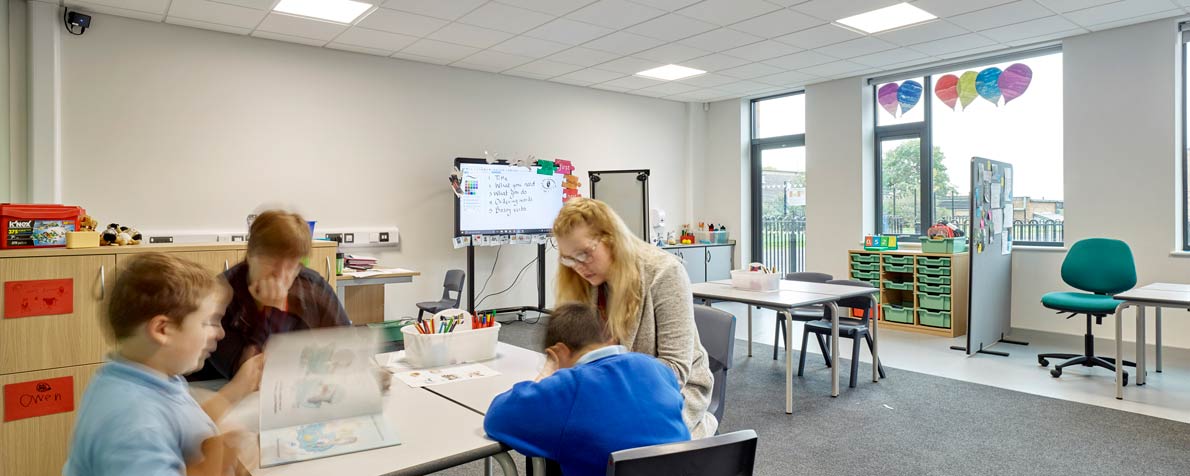 The new building on the site of the Hewett School in Norwich  includes 20 classrooms, hall, reception, dining area, offices, toilets, therapy space with associated landscaping and car parking. The  autism friendly environment provides the school with space for individualised work positions as well as space for small group work.