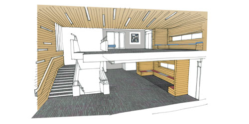 A re-fresh of the existing 1960’s UEA lecture theatres and associated foyer areas to improve the first impression students and parents get from the University as well as improve the experience of using these spaces for the students and lecturers on a day to day basis. A new external lift improves accessibility and provides a new frontage to the building which is informed by glazing bays on Lasdun’s Teaching Wall. New windows to the main foyer spaces improve natural lighting and views out onto the landscape while creating a more active frontage facing the campus showing a fresh and more welcoming internal arrangement. The removal of redundant projection booths maximised seating capacity within the lecture theatres.
