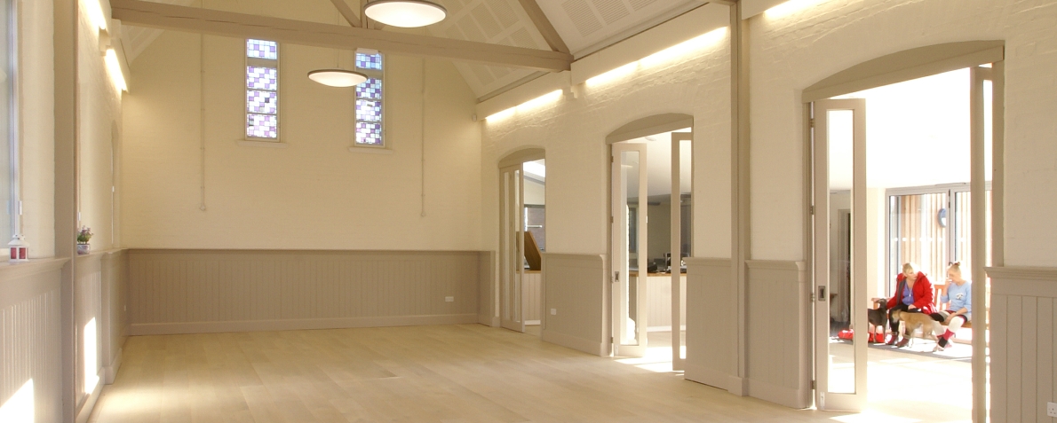 By opening up the main hall, the work creates a larger and warmer space, with better sanitary, kitchen and storage facilities and the ability to use the hall for larger groups and events or smaller meetings via existing openings into the extension this has been achieved, and the proposed kitchen is light and spacious with a connection to the hall spaces. Access and parking has also been improved with new paving and level access so the hall can be enjoyed by all.