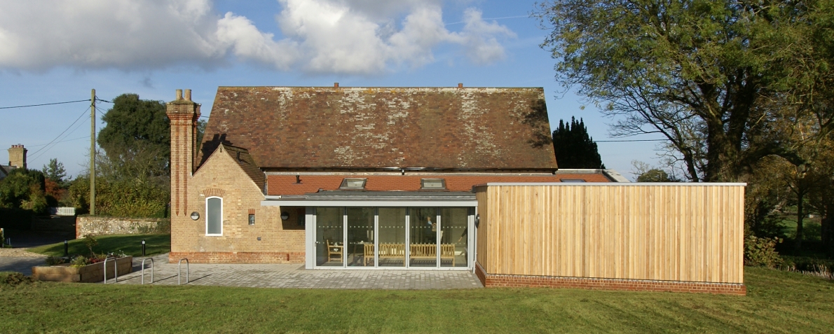 The Reading Room has been a strong presence in the village of Warham, Norfolk, since its opening in 1892. Funded by the Big Lottery Fund’s Reaching community’s programme, it’s restoration is sensitive to the existing building and palette of materials, complementing the existing hall but adding a flexible, functional and modern space. The use of timber, large sliding folding doors and a minimal profile canopy, open the extension up to the grounds to the rear.